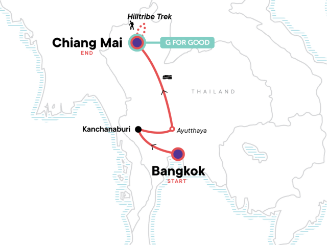 Don't just visit Thailand; find yourself on a once-in-a-lifetime, genuine cultural experience you'll talk about forever. This 10-day adventure throughout northern Thailand will give you amazing stories to share. Explore the ruins of the former Thai capital city of Ayutthaya, spend a night in a floating rafthouse, and take a local train up to vibrant and unforgettable Chiang Mai to trek into the hills surrounding the city. Get to know the people of the hilltribes who don't often get to meet travellers. This immersive experience will take you back to a simpler time that you might not want to leave.