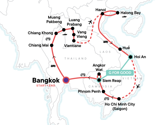 From the vibrant cityscape of Bangkok to Halong Bay's magnificent limestone karsts, this trip encompasses the highlights of Southeast Asia. Marvel at the wonders of Angkor Wat, sail the Mekong, and savour noodles in Hoi An. Shop for souvenirs in Ho Chi Minh City and join the locals sipping coffee at a lakeside café in Hanoi. With hotels, transport, and a number of included activities arranged by our CEOs, this adventure offers up the perfect combination of must-see highlights and free time.